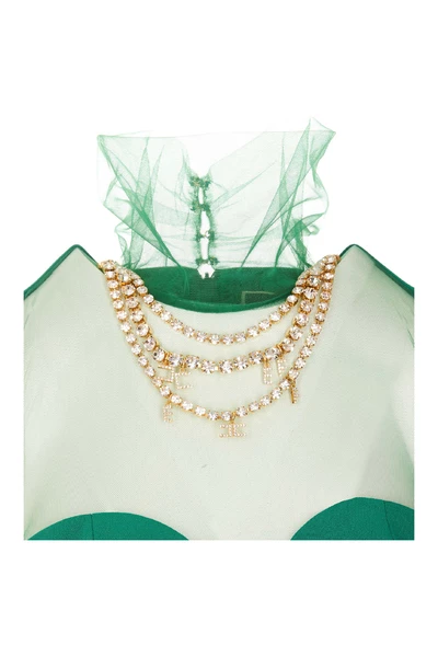 Elisabetta franchi -jurken Green Woman Mini Dress, Zip Sluiting aan de achterkant, frontale kettingdetails, tule detail, mouwloos, harthals