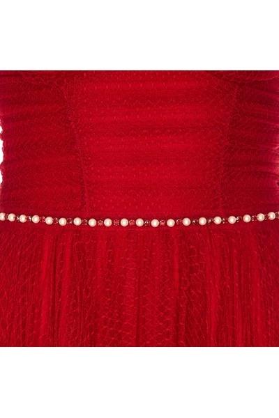 Elisabetta franchi jurken rode vrouw tule jurk, ritssluiting op de achterkant, harthals, parels details op de bustier, longsleven in tule