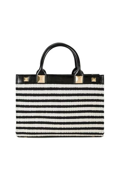 Elisabetta franchi handtas gemaakt van zwart synthetisch materiaal met glanzende afwerking, gekenmerkt door horizontale lijnen in contrasterend chenille. Verstelbare en verwijderbare schouderriem, gouden logo -details aan de voorkant. Maatregelen 29,5x22x10 cm.