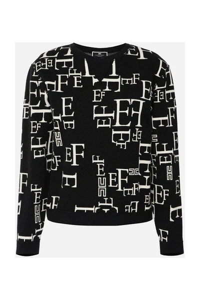 Elisabetta franchi zwarte shirts/boter sweatshirt met een groot volume, in “EF” Jaquard letters.