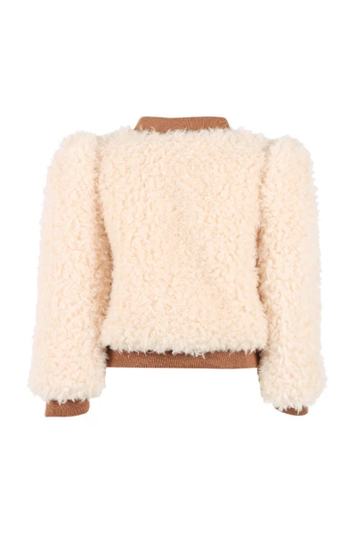 Elisabetta Franchi Coats – Ecomontone – Mandarin kraag – Lange ballonmouwen – Zipafsluiting vooraan – Gold Logo Zip Pull – geribbelde zoom en manchetten