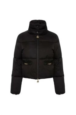 Elisabetta Franchi Bomber Jackets CROP PADDED DOWN JACKET WITH GOLD ACCESSORIES Black