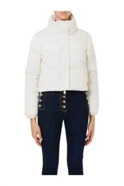 Elisabetta Franchi Gewatteerde Jassen Short Padded Quilted Coat With Belt At The Waist White