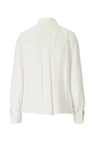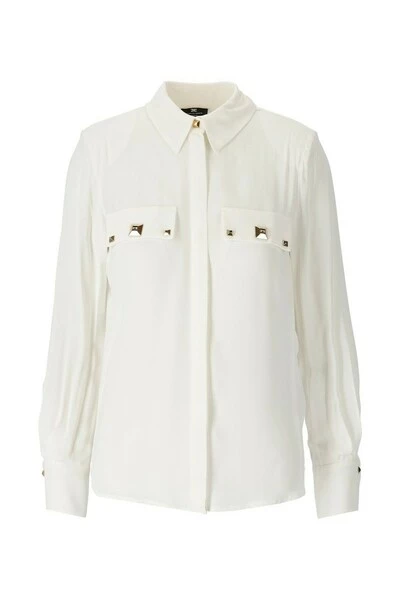 Elisabetta franchi shirt gemaakt van ivoorkleurige viscose georgette met flappen verfraaid met gouden studs met logo. Knopsluiting, rechte pasvorm.