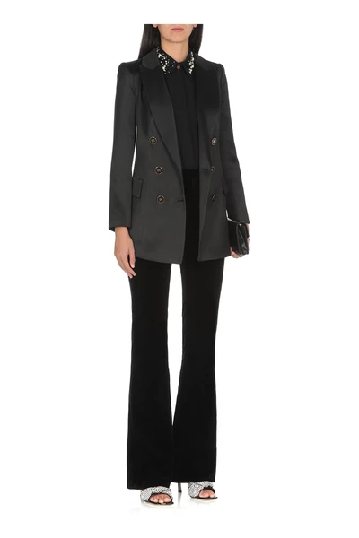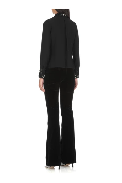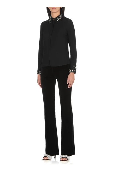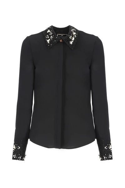 Elisabetta Franchi -shirts Black – Black Elisabetta Franchi Crépe Shirt For Woman – Kraag met kralen – lange mouwen met knoopmanchetten – Knoppen aan de voorkant bevestigen – manchetten met kralen