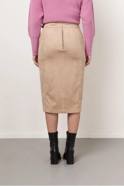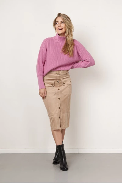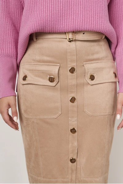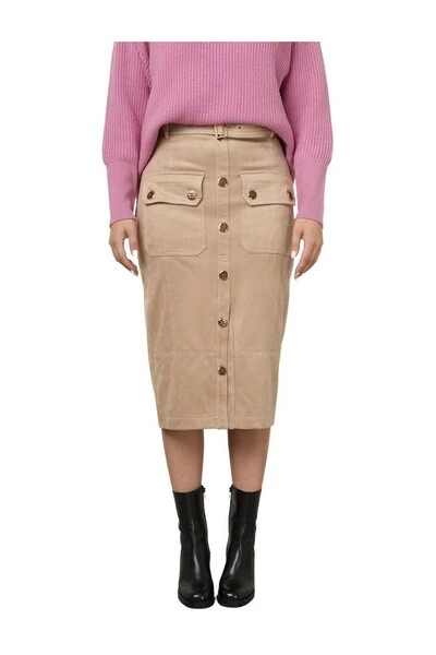 Rok van Elisabetta Franchi. Deze rok in midi lengte heeft een reguliere taille hoogte met riem lussen en een uitneembaar ceintuur met gesp. De rok heeft een knoopsluiting op het voorpand en de grove klep zakken sluiten ook door middel van knopen. Uniek Mode maakt gebruik van Nederlandse maatvoering. Een Italiaanse maat 42 is een Nederlandse maat 36. Maatvoering: IT 42, 44, 46, 48, 50, 52 36, 38, 40, 42, 44, 46 Materiaal: 95% polyester, 5% elastane Pasvorm: Dit item heeft een aangesloten pasvorm.