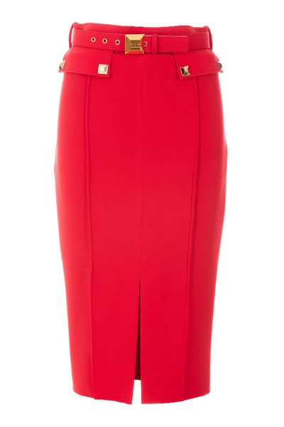 Elisabetta franchi -rokken rode vrouw rok, midi -model, rugzip sluiting, bezaaid