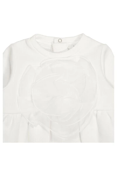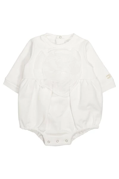 Elisabetta franchi ondergoed Romper met tule bloem aan de voorkant, ronde halslijn, lange mouwen, goudkleurig geborduurd logo op de mouw, snapknop sluiting. Samenstelling: 65% katoen, 35% polyester. Behandeling: Machine Wash Max 30 ° zachtaardig. Gemaakt in Italië