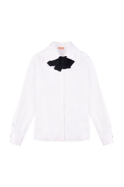 Elisabetta franchi shirts witte klassieke kraag frontsluiting met verborgen knoppen lange mouwen manchetten knopcompositie: katoen 98%; Elastaan 2%