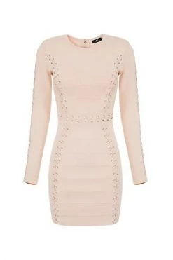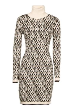 Elisabetta Franchi Casual Jurken Mini Dress In Knit Fabric With Zip And Contrasting Colour Beige