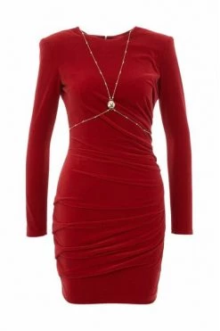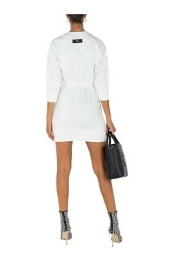 Elisabetta Franchi Casual Jurken Double-breasted Coat Dress With Crossing Chains Beige