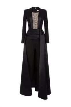 Elisabetta Franchi Jumpsuits & Tuinbroeken Jumpsuit With Embroidered Tulle Bustier Black