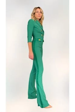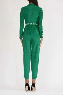 Elisabetta Franchi Jumpsuits & Tuinbroeken Logo Belt Jumpsuit Green