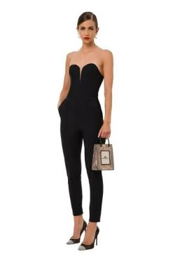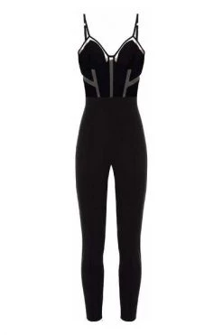 Elisabetta Franchi Jumpsuits & Tuinbroeken Slim Fit Jumpsuit With Tulle Inserts Black