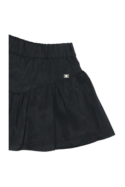 Elisabetta franchi rokken zwart – vaste kleur – katoen – ruches – elastische tailleband – metalen naamplaatje met logo