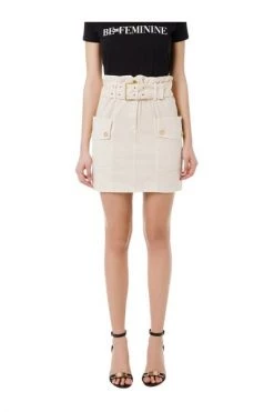 Elisabetta Franchi Spijkerrokken Mini Denim Fald Beige