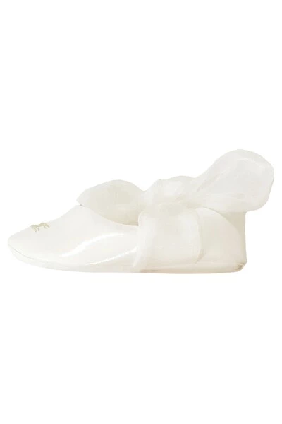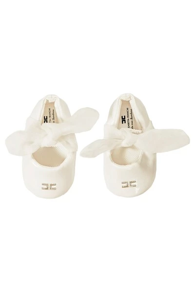 Elisabetta franchi platte schoenen ivoor heerlijke laarsjes verfraaid met een tule boog, ronde teen, platte zool, elastische band, geborduurd logo op teen. Gemaakt in Italië
