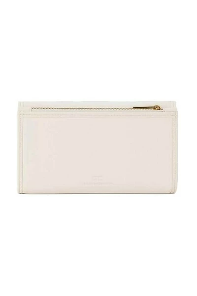 Elisabetta franchi-koppeling gemaakt van boterkleurig getextureerd synthetisch leer, versierd met EF-logo aan de voorkant. Het beschikt over slipcompartimenten, kaartsleuven en zip -pocket. Verwijderbare kettingschouderriem, meet 21x12x2,5 cm.