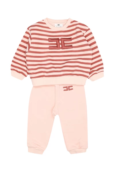 Elisabetta Franchi Sweaters – Lange mouwen – Crew Neck – Striped Pattern – geborduurd logo op voorkant – Elastisch in taille en enkel – geborduurd logo op het been