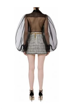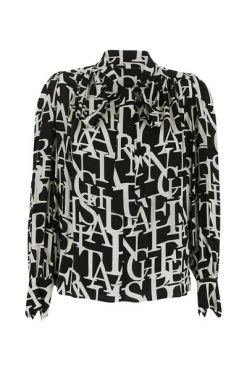 Elisabetta Franchi Longsleeve Shirts All-Over Print Top Black