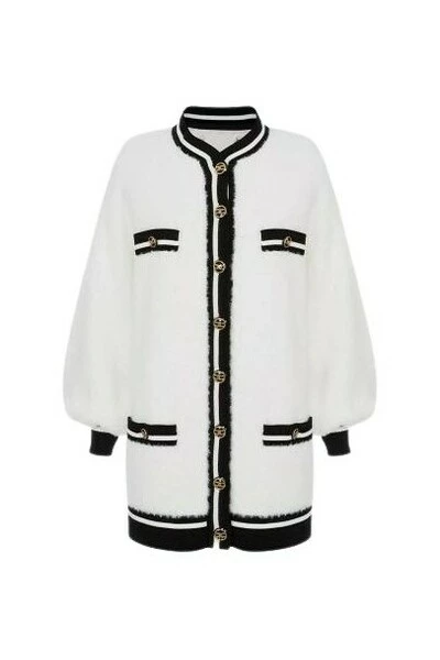 Elisabetta Franchi Coats Ivoor gebreide jas met contrasterende grenzen – Elisabetta -franchi