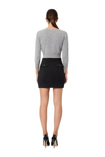 Elisabetta Franchi Miglio Gray Micro Cardigan met single -breasted knopen, met drie knoppen en mouwen 3/4.