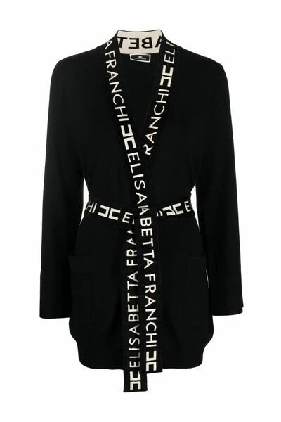 Elisabetta Franchi Sweaters witte riem Logo-Tape Cardigan van Elisabetta Franchi met zwarte, gebreide constructie, logo-tape detaillering en taille.