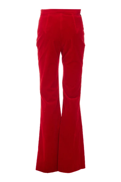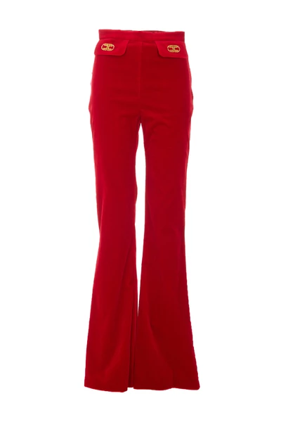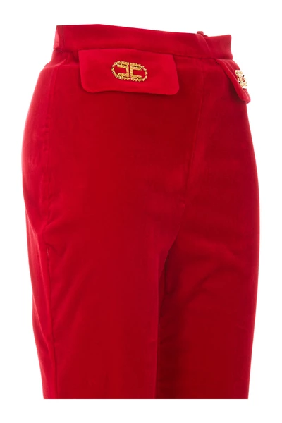 Elisabetta franchi broek rode vrouwelijke broek, haak en zipafsluiting, laterale zakken, fluwelen effect, frontaal logo