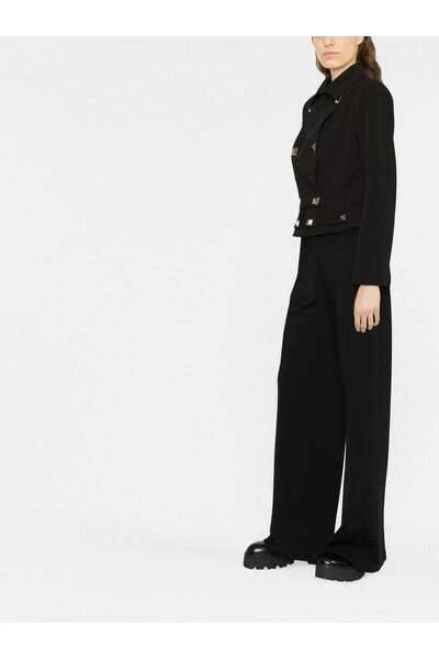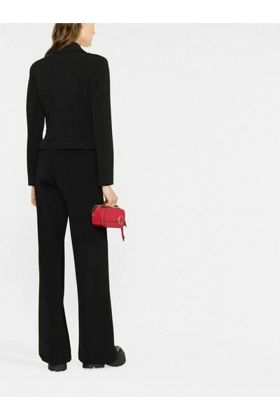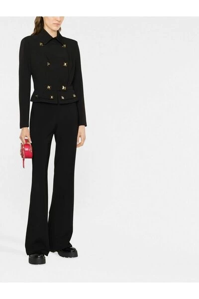 Elisabetta Franchi Jackets Zwart bijgesneden jas met dubbele rijstvesten van Elisabetta Franchi met zwarte, goudkleurige stud details, bijgesneden, met dubbele borsten met knoop met dubbele borsten, decoratieve knoopflap, voering met logo-print, lange mouwen en rechte zoom.